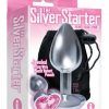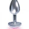 From the Nines collection Silver Starter Heart Bejeweled Steel Plug with Pink Stone on its end. Sleek chrome metallic body and glitzy heart shaped bejeweled base on the anal plug perfect for beginners, designed and sized for easy insertion. Non-porous, easy to clean. Body safe stainless steel. Actual height 2.8 inches. Includes black storage bag.