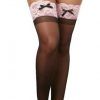 Back by popular demand. Thigh High Stockings Black Pink One Size from Dreamgirl International Black Diamond lingerie line. Fabric content 85% Nylon, 15% Spandex. Thigh High Stockings feature pink lace tops and black bows on the front. Ladies sizes 2 to 14. Weight 90 pounds to 160 pounds. Care hand wash in cold water. No bleach. Line dry. Please note stockings only.