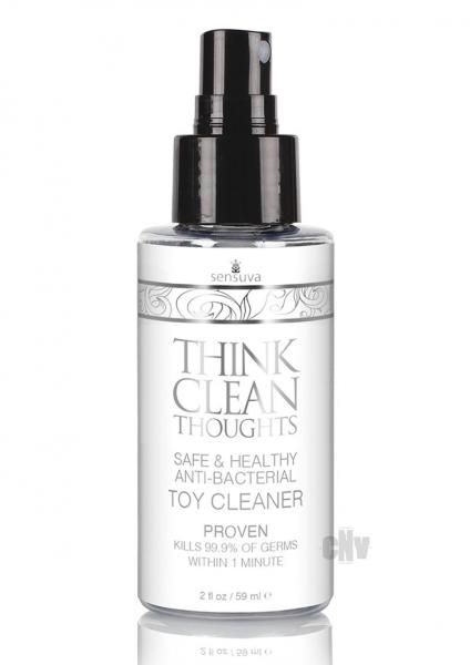 Think Clean Thoughts is a quick and simple-to-use anti-bacterial cleaning spray, containing active anti-microbial ingredients proven to kill 99.9% of all germs, and it is mild enough to not cause irritation to delicate tissue. Made with healthy ingredients such as: water, witch hazel extract, grape seed extract, sweet orange and other true essential oils. Think Clean Thoughts is a better choice for cleaning pleasure products than standard bar hand and body soaps because it is oil-free and will not break down toy materials, nor does it leave any residue that may be irritating to delicate tissue. Simple to use: spray directly onto pleasure products both prior to use, and afterward. Wipe away extra fluid.