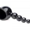 Measurements 8 inches in total length, 5 inches insertable, beads measure between 0.5 inch and 1.15 inches in diameter, opening measures 2.25 inches in diameter. Material Thermoplastic Elastomers TPE. Color Black. Note massage wand is not included.