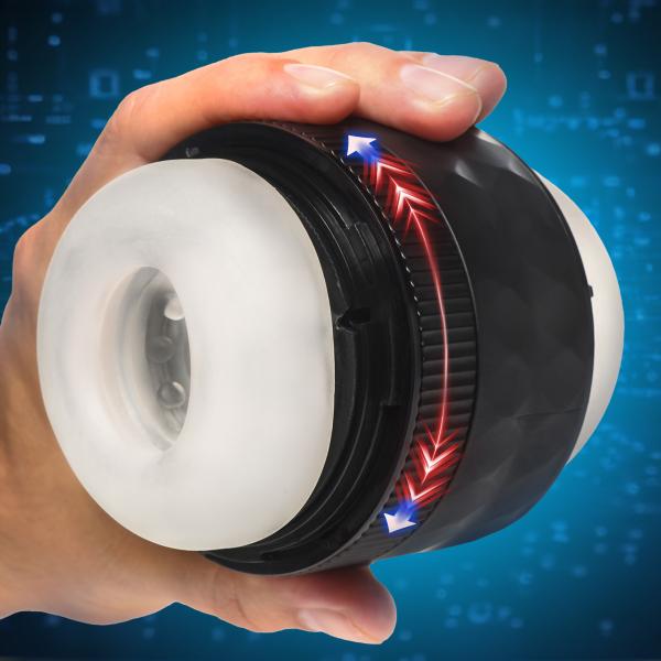 Customize your fit with this tightening masturbator! This stretchy, soft, TPE tunnel sits inside of a plastic case and can be adjusted to get smaller or larger for your shaft size and preference. Choose between 8 different tightness settings by turning the ring around the case to larger or smaller. Inside the tunnel are textured nubs that add to the sensation! Enjoy using it with the cap on one side or take it off for a cum-thru tip! Clean it up by rinsing it out and using mild soap and warm water, then letting it air-dry. Put both caps back on to keep dust and debris out. The case also provides a good grip so you can hold on easily as you stroke yourself with lots of lube! Only use water-based or silicone lubricants for best results. Take off both end caps, squeeze some lube inside and on your shaft, then slide your rod inside. Use the ring to adjust and tighten around your shaft. The squeeze adds pressure and feels so good as you stroke! Put on your favorite sexy films and enjoy solo or put on a show for your partner! Measurements : Case length: 4.7 inches, width: 3.4 inches. Insertion length: 4.25 inches. Stroker opening diameter is 0.9 inches at one end and 1.25 inches at the other end. Tunnel expands from 18-35mm diameter (0.7 inches – 1.38 inches). Materials : TPE, ABS plastic Color : Clear, black