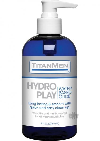 TitanMen Hydro Play is the ultimate multi-purpose glide to satisfy all your sexual needs. The long lasting water based formula is super slick, non-sticky, and offers a quick, mess free cleanup. Whether you use it for masturbation, with your favorite toys, or with a partner, the possibilities are endless!