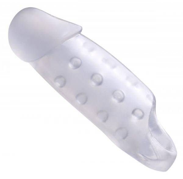 This smooth, clear cock enhancer has a retaining strap and is studded internally with gripping nodes. The phallic shape instantly adds girth and length, with thick walls and a solid tip. The material is stretchy yet firm, and is phthalate free.