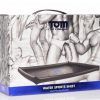 Use this inflatable sheet on your bed or the floor as an arena for your dirtiest activities! Whether you are into wet and messy play, water sports, or just plan on having a lot of fun, the blow-up edge border will keep all fluids inside the spill-proof sheet. The lightweight and durable design makes it convenient to use, while the vinyl material is easy to clean and maintain. Bring your fantasies to life like never before when you can get as filthy as you want! Measurements: 67 inches in width, 78.5 inches in length. Edges inflate up to 5.5 inches in height. Material: Vinyl. Color: Black. Note: Fits on top of a queen sized bed or larger. Free collector print included.