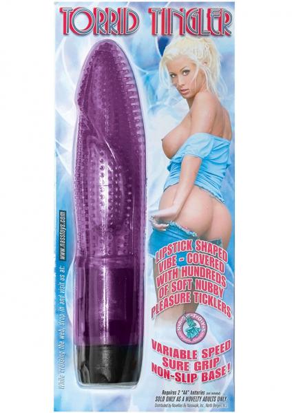 Lipstick shaped Vibe covered with hundreds of soft nubby pleasure ticklers. These soft and flexible naughty nubbies will ignite a flood of torrid tingling orgasms! Variable speed sure grip non-slip base! 2 AA batteries not included.