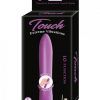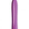 Silicone vibrator is pressure sensitive or button activated with 10 functions. Waterproof. USB rechargeable, with cord included. Discreetly quiet. Measures 5 inches long.