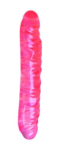 12 inch translucent pink jelly double dong with a thick veined texture. 1.5 inches wide with a 5 inch circumference.