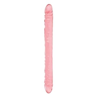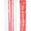 Translucence™ Series… Soft, Pliable, Translucent Jelly Dongs in the Most Popular Shapes and Sizes! Superior quality,Hand finished,High quality PVC Made in the USA 17.50 inch translucent pink jelly double dong with a thick veined texture. 1.75 inches wide with a 5.5 inch circumference.