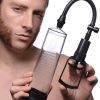Pump up your penis for a stronger, bigger, and more sensitive erection! This penis pump is easy-to-use with results that will keep you cumming back for more. Slide into the silicone sleeve using a little water-based lube for sleekness. The tight opening will create a seal around your penis so that pressure can build within. The cylinder is textured for a firm grasp, clear so that you can watch yourself grow, and marked with measurements so that you can track your progress! The trigger handle pump is easy to use – just squeeze to build begin the suction process. When you are ready to tap out, press the air-release valve on the flexible hose to quickly reduce pressure within the cylinder. Measurements: Cylinder is 8.5 inches insertable length, 2.35 inches in diameter. Silicone opening is .75 inches in diameter, unstretched. Hose is 8.75 inches in length. Material: ABS, silicone, PVC