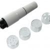 Enjoy great power right at your fingertips with this 4 inch long Trinity Rocket Massager. Its small size makes it very discreet and perfect for travel, all without sacrificing power. Its vibrations will feel Oh So Good and send you into climax heaven. With its 4 interchangeable attachments, the pleasure will be endless. Measurements: 4 inches long, 1 inch max width, Material: ABS, Color: White, Note: Requires 1 AA battery, not included