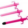 Load it up and shoot it out, it is as simple as that! The lube launchers narrowed injector makes it easy to ease into anal or vaginal play by lubricating those hard to reach places. The convenient finger grips allow for precise insertion while the attractive casing is easy to clean. Includes two additional launchers.
