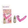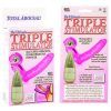 Total arousal. The perfect couples climaxer stimulates every erogenous zone. Ultimate Triple Stimulator is for couples who yearn for multiple stimulation to the penis, clitoris, vagina, and even the anus. Insert the penis through the soft and comfortable cock ring for penile stimulation and erection support. The vibrating bullet will stimulate the penis, clitoris, and anus, depending on preferred position. The six inch probe is super flexible adhering to any configuration. Triple your pleasure. Vibrating support ring with flexible vertebrae dong. Multiple speed removable bullet. Safe and pure for body and pleasure. Made using phthalate free, non-toxic materials PVC ring and dong, ABS plastic with silver plating bullet vibrator.