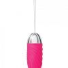 One button controls 36 unique vibrating speeds and functions Wavy texture with stimulating pleasure nubs Bullet made from body safe silicone and durable ABS Plastic Controller made from ABS plastic, uses 2 AAA batteries, not included. Retrieval leash for safety USB rechargeable with connector that works like a thumb drive. Phthalate and latex free. Fully waterproof and submersible. Dimensions Bullet length 3.5 inches, width 1.4 inches.