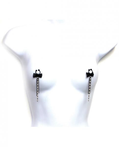 Explore new levels of sensual style with these luxuriously sweet non-piercing nipple rings! Surprise your loved one or give yourself a treat to this non-committal sensual treats. Handcrafted organza tyes. Luxurious pearl detail. Non-piercing nipple rings secure onto nipples diameter. Color Black. From Tyes by Tara.
