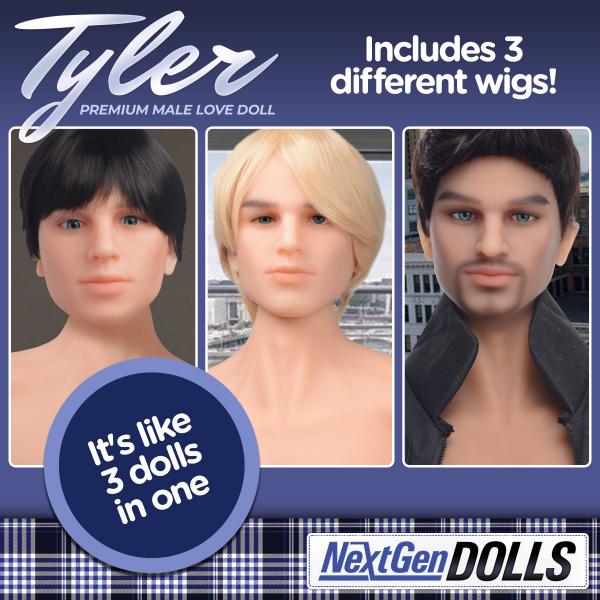 Take home this fantasy love doll and make him into your very own boyfriend! He’ll be a constant companion for lonely nights, a seductive lover always ready to have fun, and a perfect way to explore new things for those who are curious to feel the firm rod and hard abs of a man. Made out of TPE rubber, his body is firm, supple and soft to touch. With stainless steel armature and posable joints, his body is built strong and can be put in almost any position. He can even stand on his own if you’d like a man who can stand up for himself! His blue, bedroom eyes and full lips will seduce you and light you desire aflame every morning and night. Enjoy his realistic body, torso, hands and feet as you dress him exactly how you want to. With three wigs to choose from, you can make him a blonde, brunette or redhead for every fantasy and desire you have. Ride his 7.5 inch rod, penetrate his open anal canal, or push your own rod or dildo into his mouth for a BJ. With so many ways to enjoy him, you’ll be busy exploring his body for hours at a time! He lounges on the couch, his legs spread and his lips parted, pouting. His shirt is open and you can see his firm abs and chest. His posture is so casual, but his eyes are like fires burning into you, alert and ready to take you in his mouth, his backside, or let you ride him. Any way you want him, he’s alert and ready. You grab some water-based lube and use it to get him nice and wet. Then you slide him inside you as you mount him. His rod is large and girthy, so you switch it up, bend him over and spread that beautiful booty. You’re making this bottom take it and loving every moment! After you’re done, the weight of his body is comforting, and you lay together catching your breath. How to clean his Love Canals: After use, flush the canal with a mild antibacterial soap and water using an enema or douche bulb (sold separately). Once clean, rinse the canal repeatedly with clean water until all soap is removed. Once dry, lightly dust cleaned areas with 100% cornstarch. How to clean his body: Spot clean any soiled areas by using a wet cloth and mild antimicrobial soap. Take extra care to be gentle when cleaning his intricate face and neck area, making sure to never submerge his head, face or neck. Gently pat dry with a soft, absorbent towel once clean then lightly dust the area with 100% cornstarch. How to clean his hair: Clean only on as-needed basis. Remove the wig and gently use a mild shampoo and conditioner. Allow the wig to air dry before putting it back on. Carefully use a wide tooth comb to style the hair. Gently remove any tangles by starting at the tips and slowly working up. Store him in a cool, dark location in a standing position when not in use, ideally without clothing or shoes. Never store him in a bent position or with his joints resting against any hard surfaces. If you wish to cover him while storing to avoid dust, loosely drape or wrap a white or natural fabric such as a white cotton sheet or undyed muslin fabric over him. Measurements: 63 inches tall, with a 35 inch chest, 26 inch waist, and 37 inch hips. His penis is 7.5 inches in length, and 1.5 inches in diameter. His anus depth is 7.5 inches and his oral depth is 6 inches. Doll Weight: 100 lbs. Material: TPE Color: Flesh