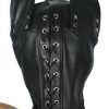 Has your naughty little pup been acting like a filthy beast? This canine hood will bring out the animal in them. Crafted in fine genuine leather with a soft feel, this hood features a full muzzle, ears, and a removable blindfold. The muzzle has a zipper mouth so you can give your dog a bone. Closes in the back with corset style lacing, and buckles at the neck with a collar. The collar features a D-ring so you can take your pooch for a walk to show them off. The leather blindfold snaps into place, and can be quickly removed. Made of supple black leather and generously sized, this extreme hood is the perfect way to make your slave your bitch- literally!
