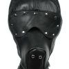 Measurements: Circumference at forehead 25 inches, muzzle length 4.5 inches, neck circumference 14.5 to 18 inches. Material Leather. Color Black. Warning: This is a NEW item that is not in retail packaging, usually a plain box, wrapped in plastic or a poly bag.