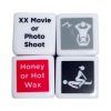 Dice include: Kinky Foreplay Activities, Kinky Props, Oral Sex Positions and Sex Positions. How to play: decide who rolls first, roll all four dice together. Read the directions that correspond with your roll from light to dark. There are no losers, roll the dice to act out all your hidden kinky pleasures.