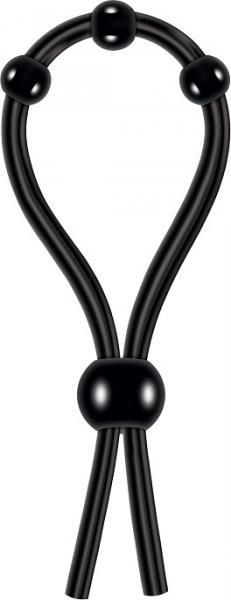 Slide pleasure beads around Lasso to your desired position, and enjoy prolonged, harder erections safely and simply during intercourse or solo play! Penis shaft tie for erection enhancement. Increases rigidity and prolongs erections. Perfect for couples play. Made from luxurious smooth silicone. Beads made from durable ABS plastic. 3 beads on lasso for added sensation. Adjust loop with large bead that slides to fit. Phthalate free and latex free. Waterproof, non-vibrating cock ring. Dimensions length 5.13 inches. Bead circumference .72 inch.