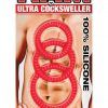 100% Silicone. Extreme clincher cockrings. 3 EZ fit sizes. Waterproof. Phthalates free. Sizes small 1.5 inches, medium 1.75 inches, large 2 inches.