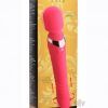 This luxurious vibrator was expertly crafted for internal and external delight. The double ended design provides a classic massage wand to stimulate the sensitive outside areas with 3 speeds of thrumming and 4 functions of throbbing. Flip it around and the handle delves deep into an orifice with a total of three exciting functions: vibration, rotation, and thrusting! The grooves and ridges provide an internal massage while the independent controls allow for internal vibration on its own, swirling strokes on their own, or both of them together. Made of premium silicone, this vibe is non-porous and phthalate free. Avoid use with silicone lube and clean with mild soap and warm water.