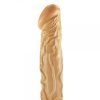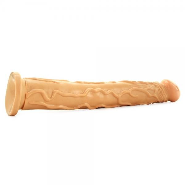 PVC dong has a veined texture for a real feel. Waterproof, with a suction cup base for hands free fun. Length is 14 inches, 13 inches insertable, 2 inches diameter.