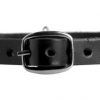 This narrow leather collar is sturdy, strong, and will last you through many play sessions. The D-ring at the front supports a welded steel O-ring, providing an enticing decoration as well as many sensual possibilities. The back is fully adjustable, and is designed to flatter both sexes.