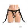 Simple, elegant and comfortable. This Velvet Kiss strapon harness wraps around your hips and thighs perfectly while the velvet inner lining softly caresses your skin with each movement. The straps are all adjustable; simply tighten or loosen them using the D-rings. At the front is the O-ring snapped into place and held securely during play! Choose between 3 different O-ring sizes as you explore small, medium and large sizes of dildos. All metal is nickel-free and the sleek looking leather is made out of vegan friendly material. The open back lets you give as good as you get by leaving access to your derriere! The straps wrap around your thighs so you can still receive pleasure from your partner in between passionate penetration. Pick your favorite strapon dildo and make sure that it slips through the O-ring without the base slipping through, too. It should be held in place by the wide base. Try all 3 ring sizes to get the right fit. Once you’ve matched the ring with the dong, slip the harness on and adjust the straps. It should sit above your hip bones and wrap around the thighs, leaving your derriere bare. Use plenty of lube as you let your partner guide the strapon in and enjoy playing! Use a damp cloth to wipe down the vegan leather. To remove stains, use unscented soap and simply rub some into the stain and wipe off with a damp cloth. To dry, wipe down with a soft, dry cloth. Measurements: Waist adjusts from 22 inches to 54 inches in circumference. Thigh straps adjust up to 30 inches in length. O-ring inner diameters: 1.5 inches, 1.75 inches, 2 inches. Materials: PU leather, velvet, metal Color: Black