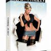 Lycra top ties in front and features capped sleeves. Micro mini skirt has front slits and elastic waist.