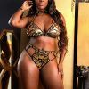 Shattered Foil Mesh Halter Bralette and Cutout Panty with Gold Metallic “Boujee”ElasticVibes Collection From Fantasy Lingerie Sizing Info:Queen SizeCup: DD/DDDBust: 40″-42″Waist: 34″-38″Hips: 42″-44”