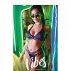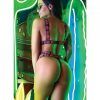 Fabric content 95% Polyester, 5% Spandex. Washing instructions hand wash separately in cold water. Do not bleach. Flat dry. Ladies sizes medium to large, M/L. Cups C/D. Bust 34 inches to 38 inches. Waist 28 inches to 31 inches. Hips 36 inches to 40 inches.