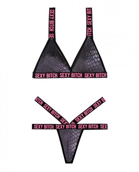 Reptile Microfiber Print Bralette with Adjustable Straps and Matching Strappy Panty from Fantasy Lingerie Vibes line. Thick adjustable straps. Reptile print. Great as outer wear.