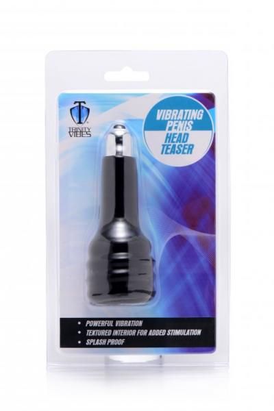 Tease the tip of your cock with a textured and vibrating stimulator! This masturbation toy includes a removable bullet that provides powerful vibration, as well as a head teaser that is internally lined with exciting nubs. The stretchy material allows it to fit over the head of just about any sized shaft. Jack off while you wear it or let your partner play with you!