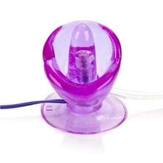 This truly multi-orgasmic stimulator has a soft, sensuous mouth that will caress your vaginal lips and a powerful vibrating tongue that will drive your clitoris crazy with an amazing suction action, providing the perfect oral simulation. The sucking action is provided by the easy squeeze hand pump that you control. The base has a durable suction cup mount. The multi-speed power pak requires 2 AA size batteries, not included.