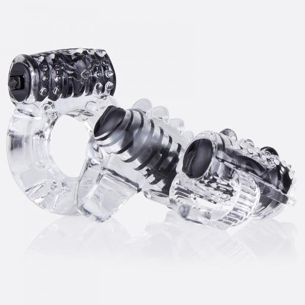 The VibrOman is the ultimate sex toy starter kit for couples exploring vibration in all its forms. This convenient collection offers him a 3-point upgrade with three powerful mini vibes designed to stimulate in very different ways. The mini tongue vibe stretches to fit around his tongue to add a vibrating boost to any cunnilingus session. The mini fingertip vibe sits at the end of any finger and makes it easy to tease, tickle and massage every erogenous zone especially the clitoris to help orgasms come easier during intercourse! And the vibrating ring makes his whole package vibrate thanks to a super-stretchy ring that fits comfortably around his penis and testicles. When worn with the motor sitting on top, he can stimulate her clitoris with every thrust and intensity her pleasure in some of her favorite sex positions. All three powerful vibrators are made with lab-tested SEBS material for a quality and body-safe experience and are completely disposable, so you can take your VibrOman home or on vacation and leave the evidence behind!