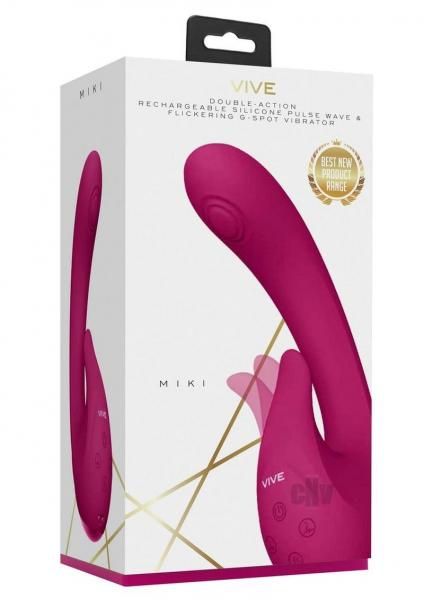 Vive Miki Pink Vibrator from Shots Toys. Miki is one of the most innovative and powerful vibrators on the market today. Thanks to its two innovative 10 function New Generation F1 motors and its advanced technologies. All two motors can be independently controlled. It is truly top of the bill! Made from 100% silky smooth medical grade Silicone. It is totally waterproof IPX7. Extremely quiet at under 60db.This means you can use it wherever your heart desires! It contains a USB magnetic rechargeable Lithium ion battery, that when fully charged, will provide 40 minutes of passionate playtime. Just plug, charge and play! When you are getting close to climax, just one touch of the special function climax button will immediately bring all the motors to full power, speed and, more importantly, bring you to an earth shattering orgasm. All Vive Vibrators have a full 1 year warranty to protect your investment. Specifications: dimensions package 4.21 inches by 3.03 inches by 7.95 inches. Weight package 5.93 ounces. Product dimensions 6.69 inches by 2.91 inches. Insertable length 4.72 inches. Quantity motors 2. Speed modes 10. Multi speed. Noise level 60 dB. Rechargeable vibrations. Rechargeable time 180 minutes. Recharged battery life time 40 minutes. Waterproof. Splashproof. Phthalate free. Materials ABS plastic, Silicone