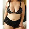 Lace Triangle Bralette and Panty with Wide Strap Detail. Materials: 90% Nylon, 10% Spandex Washing Instructions: Hand wash separately in cold water. Do not bleach. Flat dry. Sizing Info: Queen Size Size: 14-18 Bust: 42″-46″Hips: 42″-49″