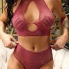 Washing instructions: hand wash separately in cold water. Do not bleach. Flat dry. 2 piece Net Crop Top with Keyhole Cut Out and Matching High Waisted Panty.