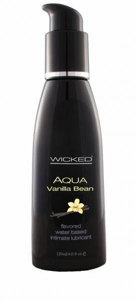 Ingredients: Water, Glycerin, Cellulose Gum, Stevia Rebaudiana Extract, Olea Europaea (Olive) Leaf Extract, Hydroxyethylcellulose, Tetrasodium EDTA, Citric Acid, Sodium Benzoate, Potassium Sorbate, Flavor. Size: 4.0 fluid ounces or 120ml e. Wicked Aqua Vanilla Bean Lube 4 ounces from Wicked Sensual Care.