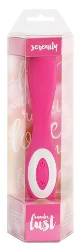 Wonderlust Serenity Pink has an smooth, velvety soft silicone finish. The firm handle also has a light up silicone button which controls the on/off feature and all vibration functions.