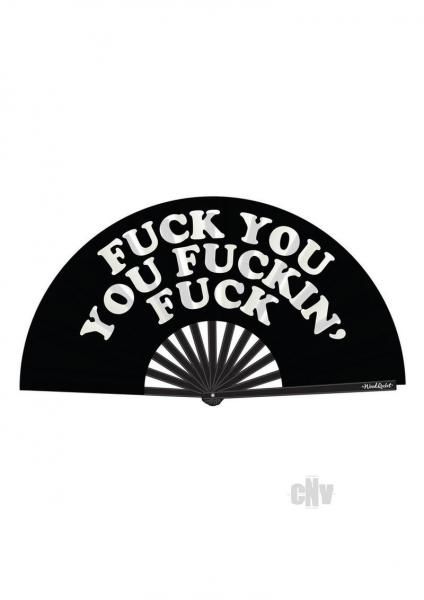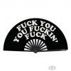Cool yourself in style with this “Fuck You You Fuckin’ Fuck” large-sized folding hand fan. Simple and fun with just the right attitude! Made of glossy bamboo ribs and high-quality satin material.