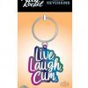 This “Live Laugh Cum”enamel keychain by Woodrocket is a metallic rainbow of color. Hang it on your key ring or give it as a gift!