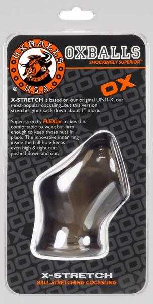 Atomic Jock X-Stretch Unit X Sling with Ball Stretcher Smoke from Oxballs. Stretch version adds more squeeze to your sack. It grips the base of your dick and balls while pushing your nuts down low in the ball bag. It is sleek and super stretchy just like the Unit-X, but with an extra inch of rubbery ballstretching. Oxballs invented the original Cocksling and Nuttsling this item works the same way but it is slimmer and fits better with no extra bulk. Nothing feels like a sling on your dick it feels just like when you grip the base of your meat and balls with your hand and squeeze, not tight like a cock ring, it grips all of your junk. And this version stretches your nutt sack too! There is an inner ring near the bottom that keeps your balls, even high and tight ones, pushed down and it is squishy enough it will fit even huge ball-sacks. If you are the kind of guy who is into full on junk sex. Unit-X Stretch is perfect for slipping your whole package, balls and all up a sloppy hole. Made from our exclusive Thermoplastic Rubber TPR blend, it is non-toxic, phthalate free, and no scent. Our blend feels like the best silicone but stretches further. Stats approximately total length 3 inches. Penis opening: 1 1/8 inches. Ball opening 1 inch. Weight 2 ounces.