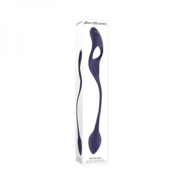 Experience pleasure from tip to tail with this innovative toy that features a vibrating plug on one end and a vibrating penis ring on the other, with a long, flexible tail in between that offers up multiple possibilities, solo or not.