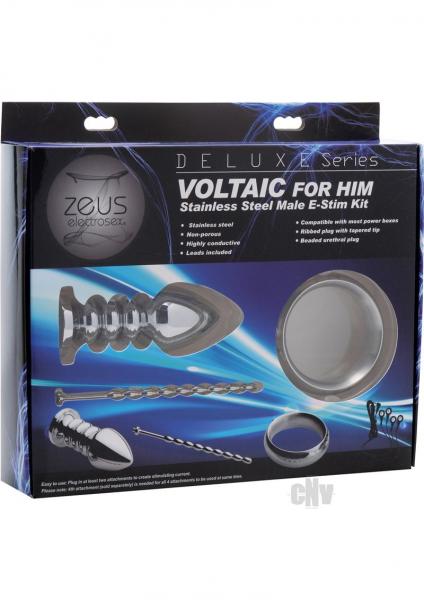 Electrocute your genitals or those of your slave! The Voltaic Male E-Stim Kit is made of non-porous stainless steel for a smooth, sanitary insertion, easy cleaning between uses, and powerful conduction! Compatible with most Zeus E-stim Power Boxes, this kit includes a set of four leads and three attachments. Two attachments must be in use in order to receive the bipolar conduction.