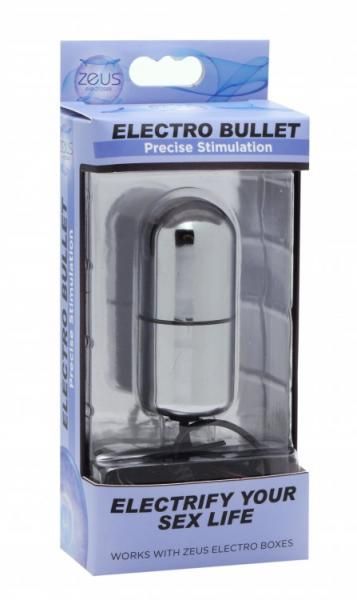 Step up to the next level of bullet pleasure with the Zeus Electro Bullet. Made to work with all Zeus Power Boxes, this bullet will take you on a whole new ride. Once plugged into a power box unit, place this bullet on your clitoris, in your anus or vagina and it will send pleasurable currents to that area. Sensations can be controlled by you, giving you ultimate control for mild or intense pleasure flow. Measurements: 2.25 inches in length and 1 inch in width. Please note power box not included.