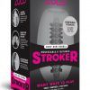 Rotating male stimulator. 7 rotation functions. Stimulating nubs, beads and soft lips provide a pleasurable experience. Ultra realistic textured sleeve. LED indicator. Includes: 1 masturbator, 1 travel bag, 3 silicone rings, instruction manual. Rotating male stroker requires 4 AAA batteries, not included.