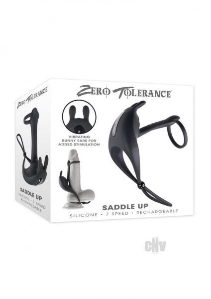 Saddle up with this innovative penis ring and girth enhancer that features a tightening draw string for a custom fit. A front ring holds the flexible vibrating shaft in place while bunny ears deliver intense vibes simultaneously for a double-motor experience.